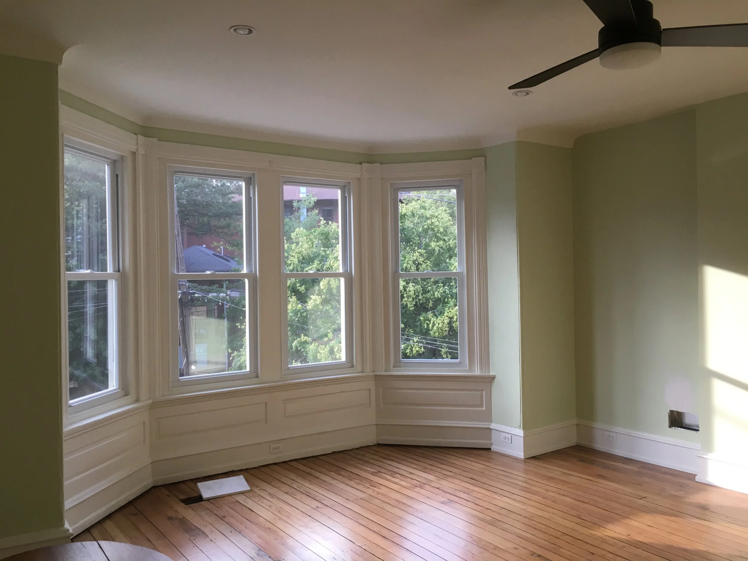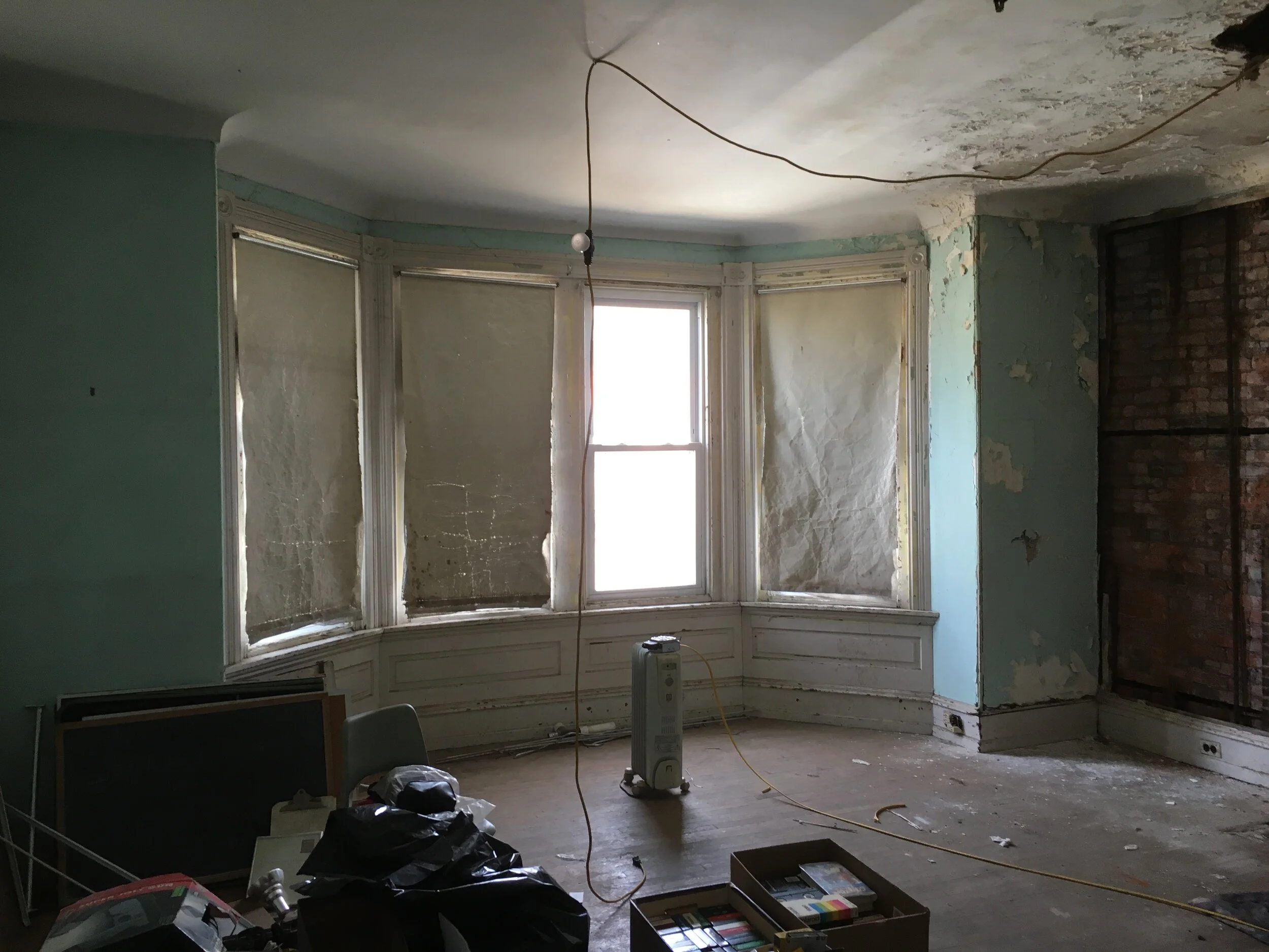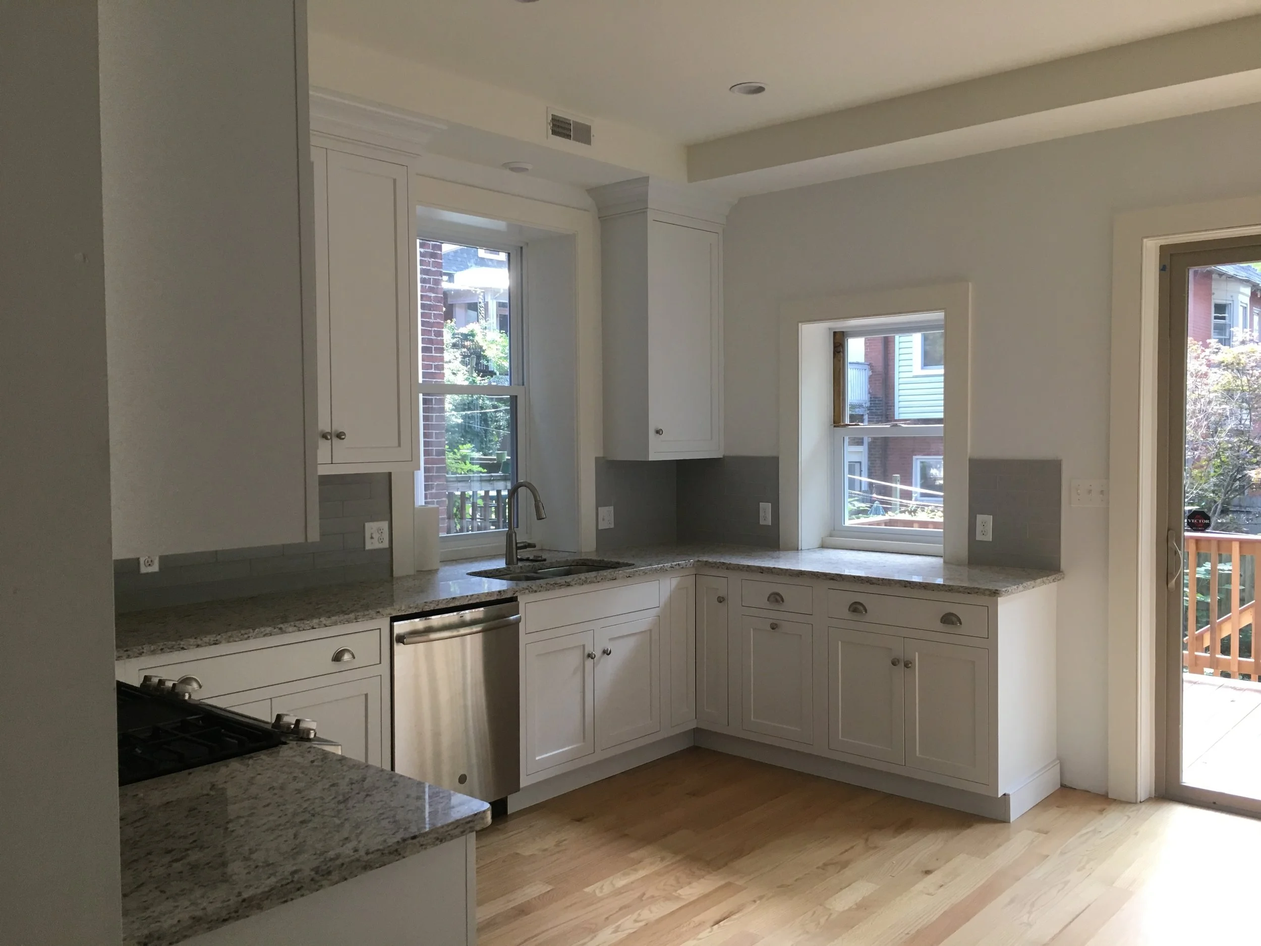 This three-story Victorian twin in West Philadelphia had been neglected and vacant for a number of years. Purchased by a near neighbor, the house was completely renovated, inside and out, with an eye to preserving as many of the existing details as possible, while creating a comfortable and contemporary house. Work included a reconfiguration of the first floor to expand the kitchen and add a powder room; new bathroom finishes and fixtures on the second and third floors; plaster and woodwork repair and replacement throughout; refinished and new floors; and exterior repair work, including a rebuilt front porch and a new deck at the back. The house has been sold to the neighbor’s daughter, who is moving in with her young family.